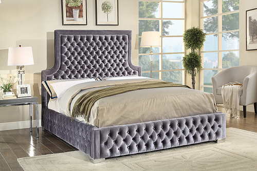 Grey Velvet Fabric High Back platform Bed IF05 - 5600