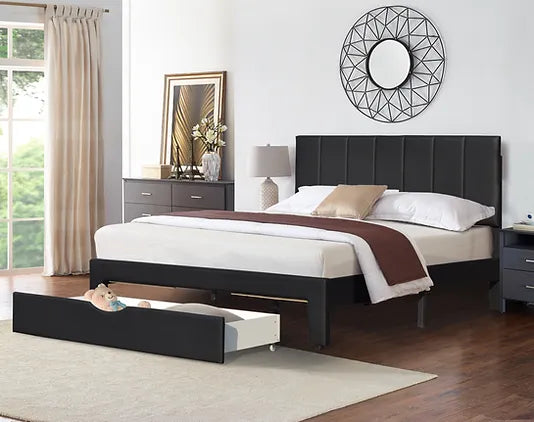 This Miami Bed with Storage Drawer is a perfect addition to any bedroom. It has luxurious white PU upholstery and a contemporary design that will instantly upgrade your bedroom decor. The queen size bed also features a storage drawer underneath, perfect for extra pillows and blankets. This bed is sure to add a touch of style and sophistication to any room.