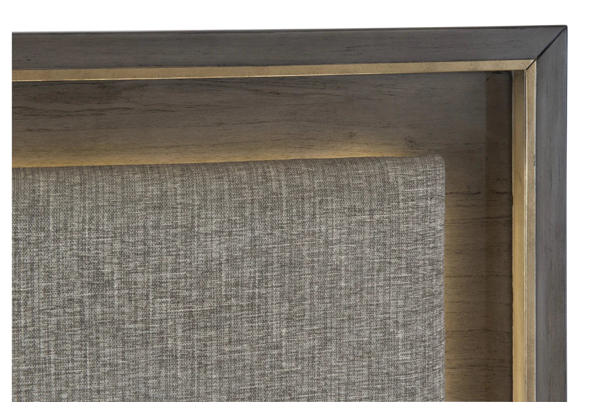 The elegant modern profile of the Scarlett Collection will be the perfect addition to your bedroom. Cashew solid wood and Mindy veneer is finished in a brownish gray with gold finished hardware and accent banding lending subtle contrast to the profile of the collection. The headboard features LED backlighting, enhancing the gray fabric headboard insert.