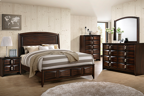 8 Piece set includes: King or Queen Bed, Dresser, Mirror, 2 Night tables, Chest.
